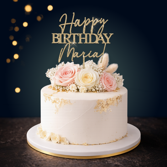 Happy Birthday – Topper tort personalizat (Nume + Vârstă)
